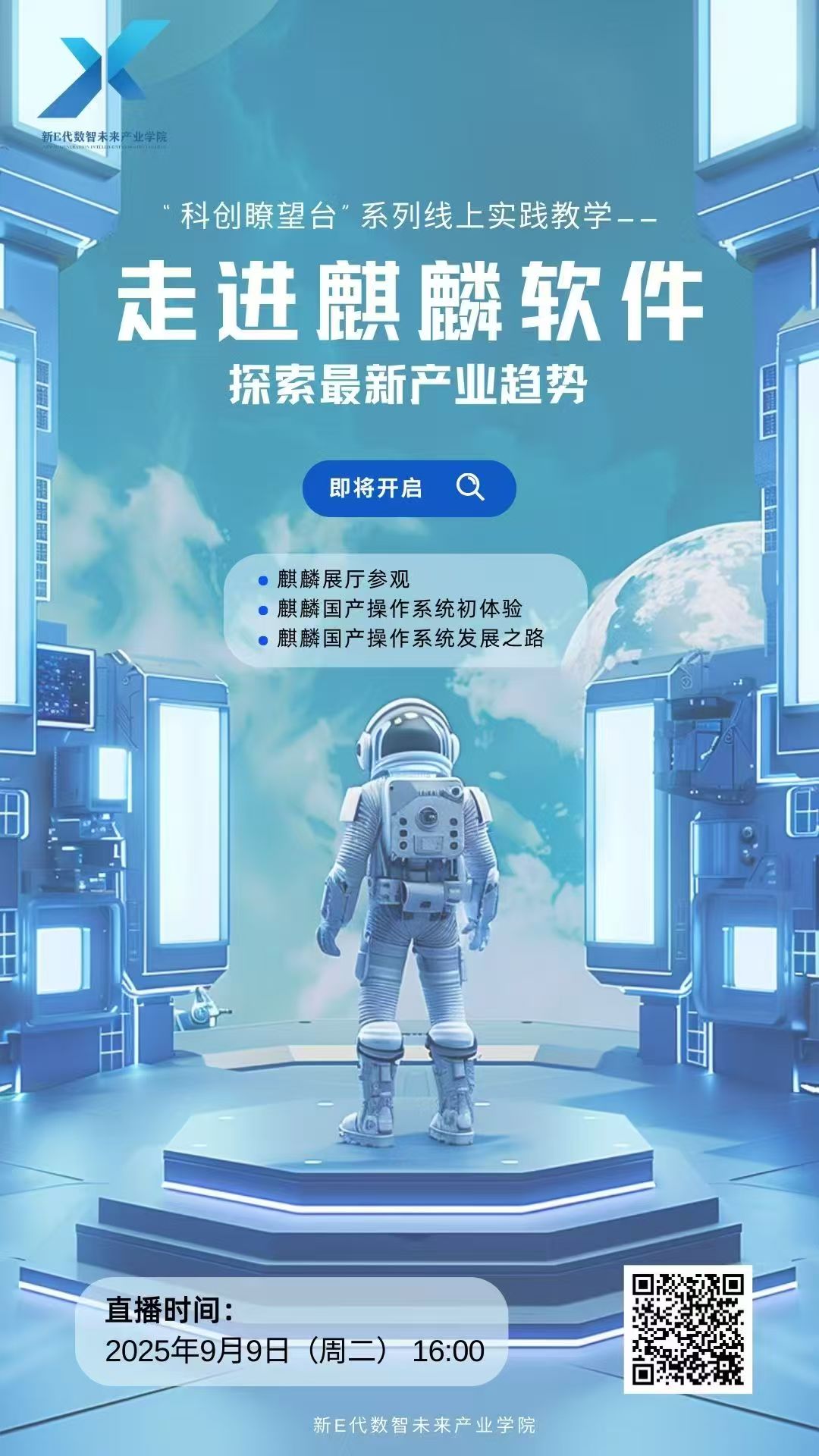 2025年9月9日16:00,人工智能学院组织近百名师生线上参加新E代数智未来产业学院“科创瞭望台”系列教学实践活动——“走进麒麟软件,探索最新产业趋势”。两个小时的直播里,师生们“云参观”麒麟展厅、初体验银河麒麟操作系统,并沿着2200万行代码铺就的“国产自主之路”,完成了一场从震撼、自豪到使命、担当的沉浸式思政大课。
