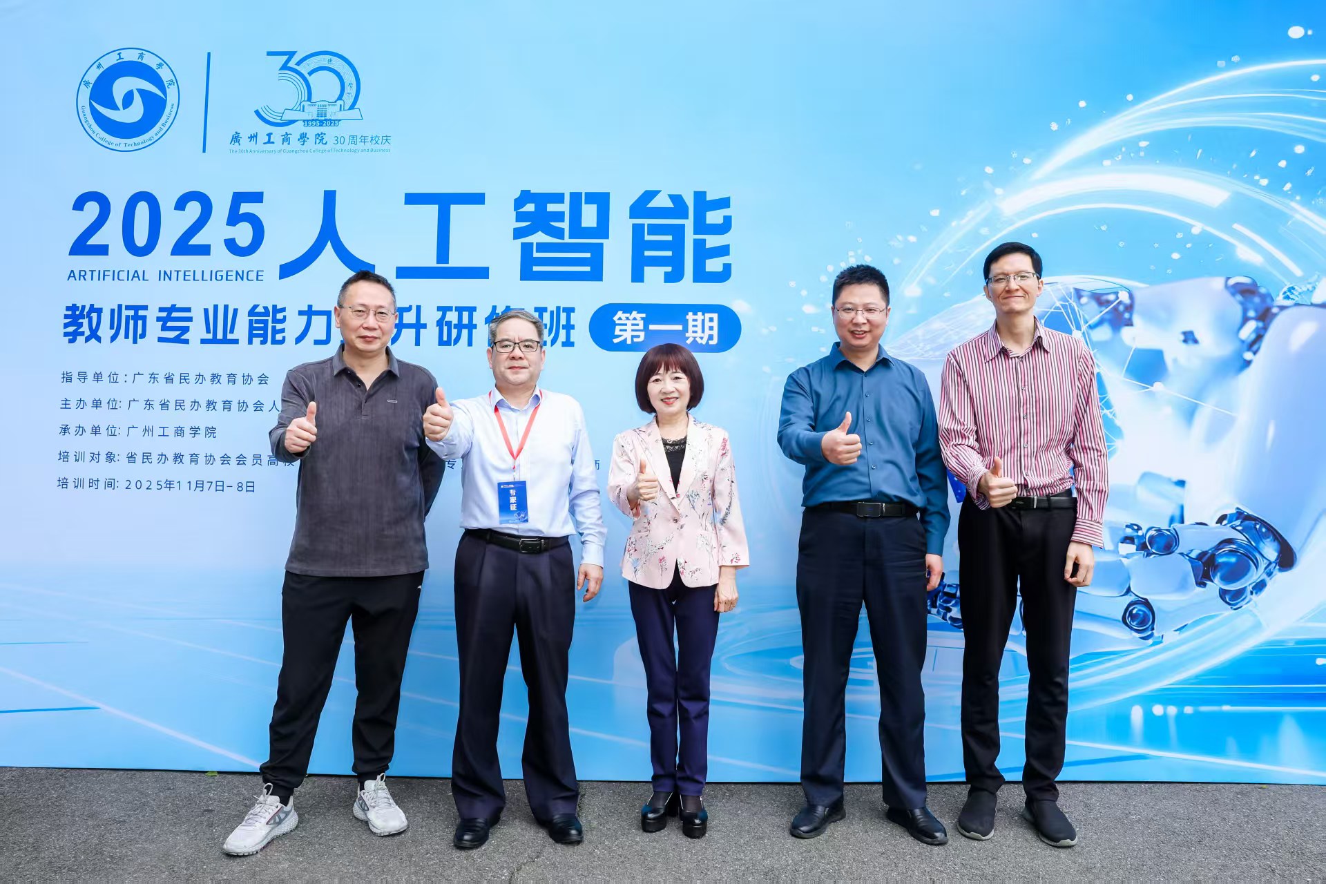 为深入贯彻落实国家关于人工智能教育的战略部署,推动高校教师专业能力发展与教学创新,2025年11月7日至8日,华南农业大学珠江学院人工智能专业教研室主任易学能博士与计算机科学与技术专业的刘彩霞老师,应邀参加了由广东省民办教育协会人工智能与机器人专委会主办、广州工商学院承办的“人工智能教师专业能力提升研修班(第一期)”。此次研修是广东省民办教育系统为推动人工智能与教育深度融合而组织的高水平师资培训活动。