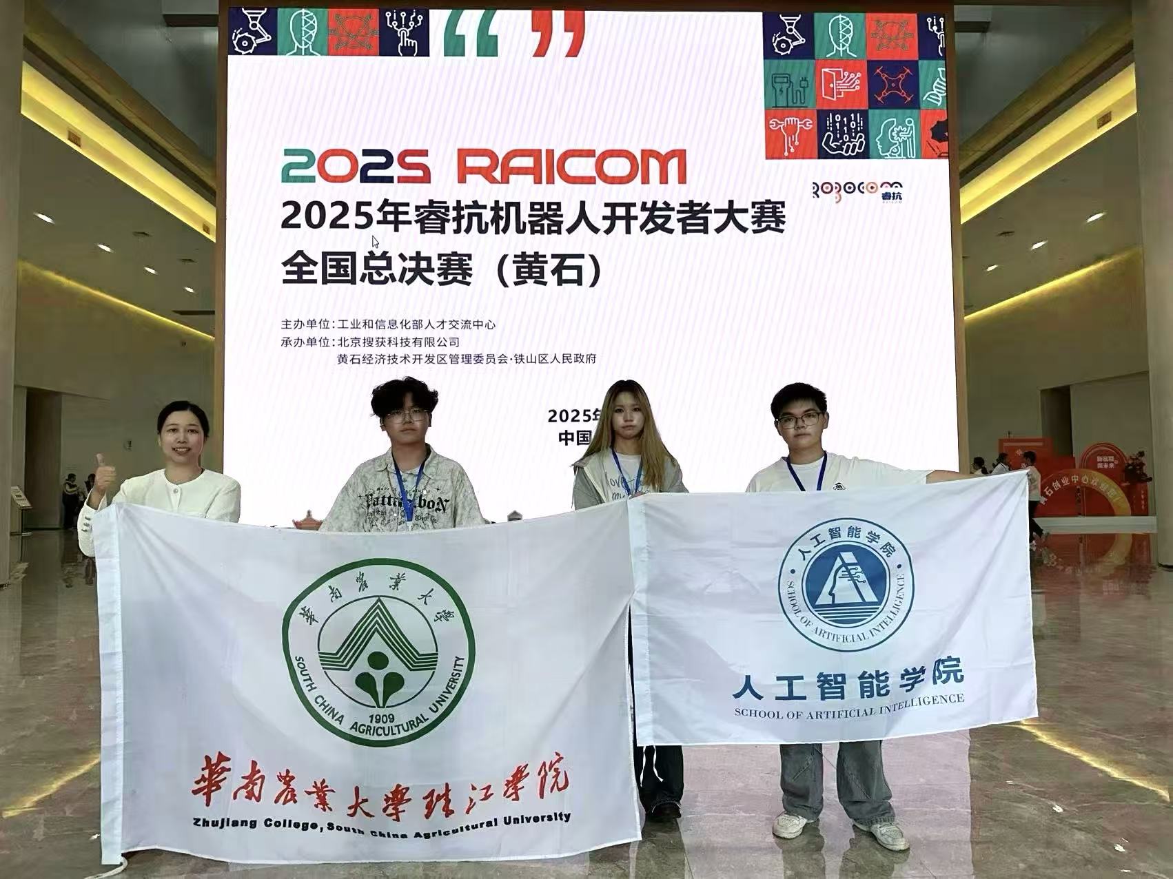 10月17日至19日,2025年睿抗机器人开发者大赛全国总决赛在湖北省黄石市黄石未来科技城举行。我校人工智能学院学生廖耿杰、林哲、黄博组成的代表队,在邓继忠、邱广萍老师的精心指导下,与来自全国各高校的49支参赛队伍同台竞技,最终脱颖而出,荣获智慧零售组全国一等奖!